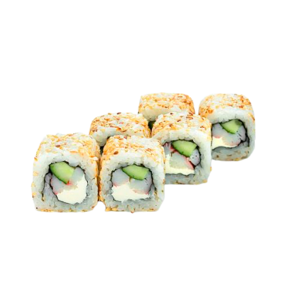 Склад: рис, сир Філадельфія, огірок, салат сівід, кунжут