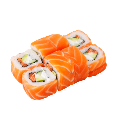 Склад: рис, сир Філадельфія, лосось, огірки, лист салату