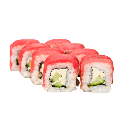 Склад: рис, сир Філадельфія, тунець, соус Спайси, огірок, ікра Тобіко