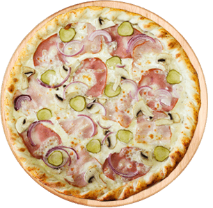 Склад: соус вершковий сир Моцарела бекон шинка печериці цибуля червона огірки солоні