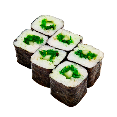 Склад: рис, вугор, лосось, огірок, салат сівід, ікра червона