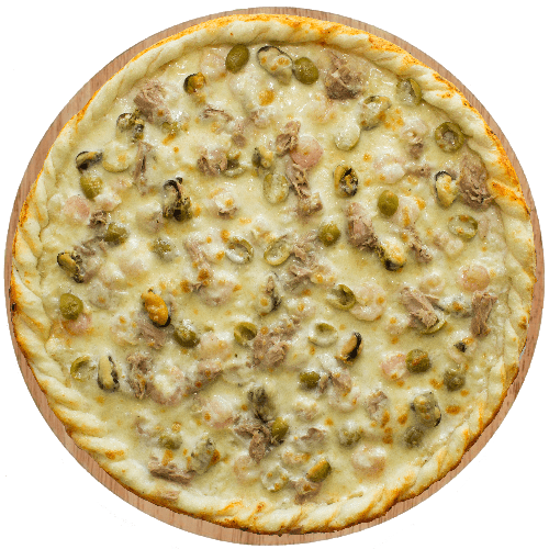 Склад: соус вершковий сир Моцарела креветки мідії тунець оливки