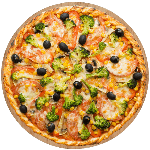 Склад: соус томатний сир Моцарела помідори маслини броколі спаржа печериці кукурудза перець болгарський