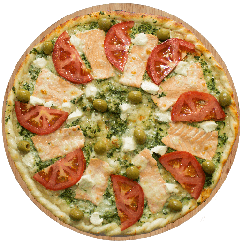 Склад: соус вершковий сир Моцарела сир Фета лосось оливки шпинат помідор