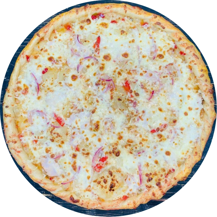Склад: соус кисло-солодкий сир Моцарела сир Пармезан філе куряче перець болгарський цибуля червона ананас