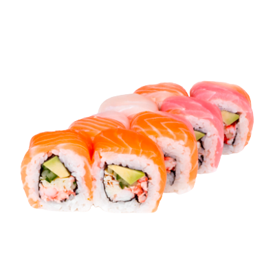 Склад: рис, сир Філадельфія, лосось, тунець, вугор, огірок, авокадо, ікра летючої риби