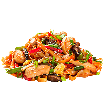 Склад: локшина пшеничне / кришталева, курка, перець, морква, селера, цибуля, кунжут, арахіс.