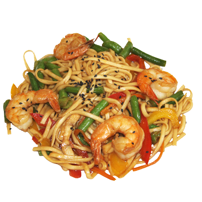 Склад: локшина пшеничне / кришталева, креветки, мідії, кальмар, перець, морква, селера, цибуля, кунжут, арахіс.