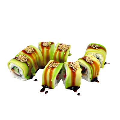 Склад: рис, вугор, огірок, авокадо, соус Унагі, ікра тобіко, кунжут